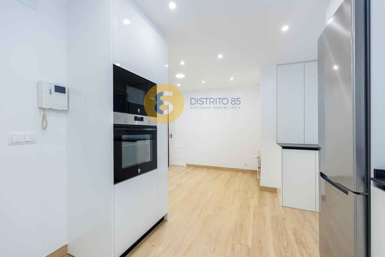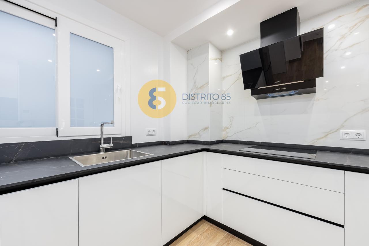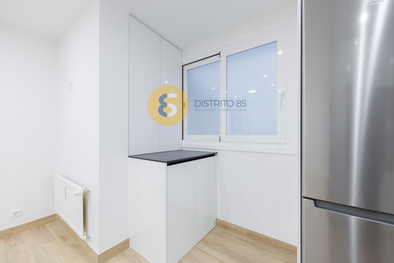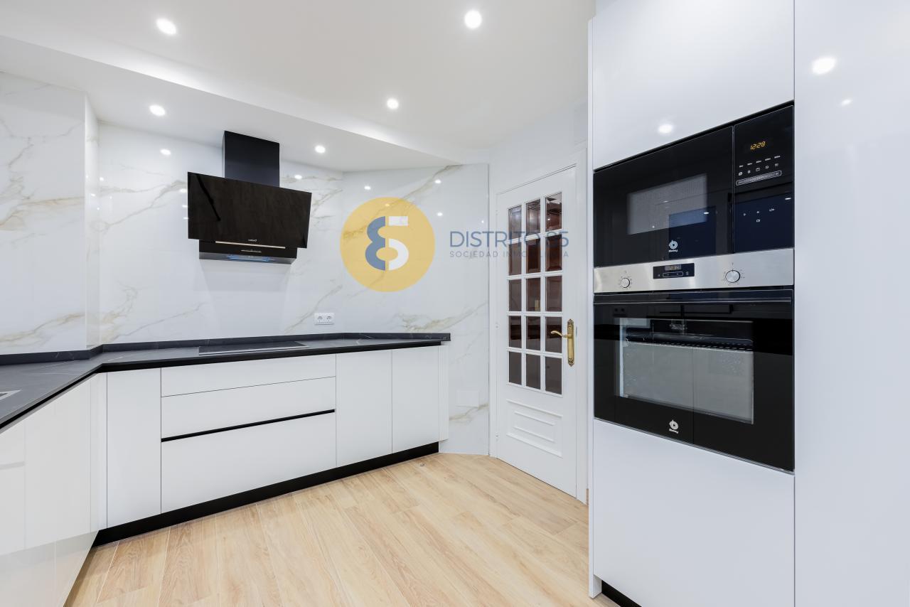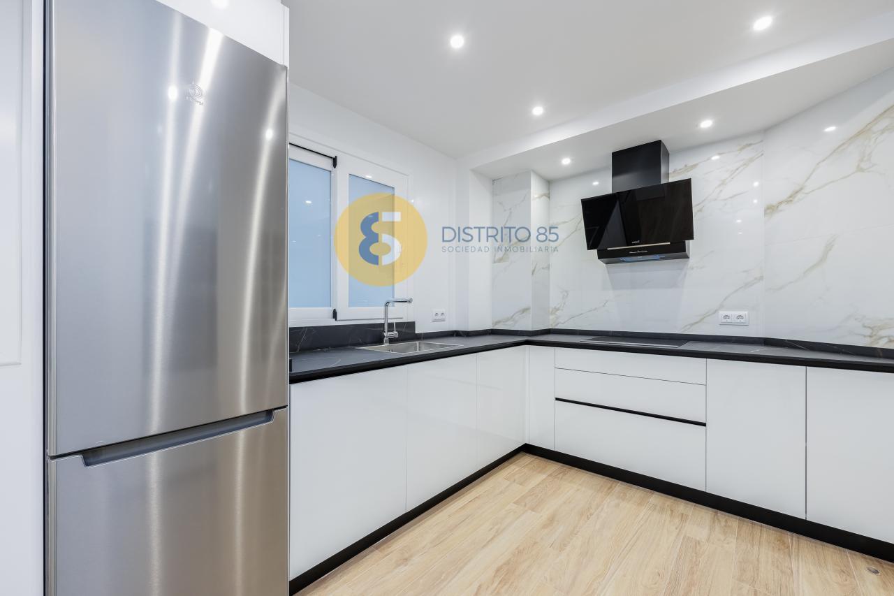 La vivienda se distribuye de la siguiente manera: amplio recibidor con acceso a cocina completamente reformada y equipada con todos los electrodomésticos a estrenar. Además cuenta con un comedor - zona office abierta a la cocina (antiguamente era el cuarto dormitorio de la vivienda).