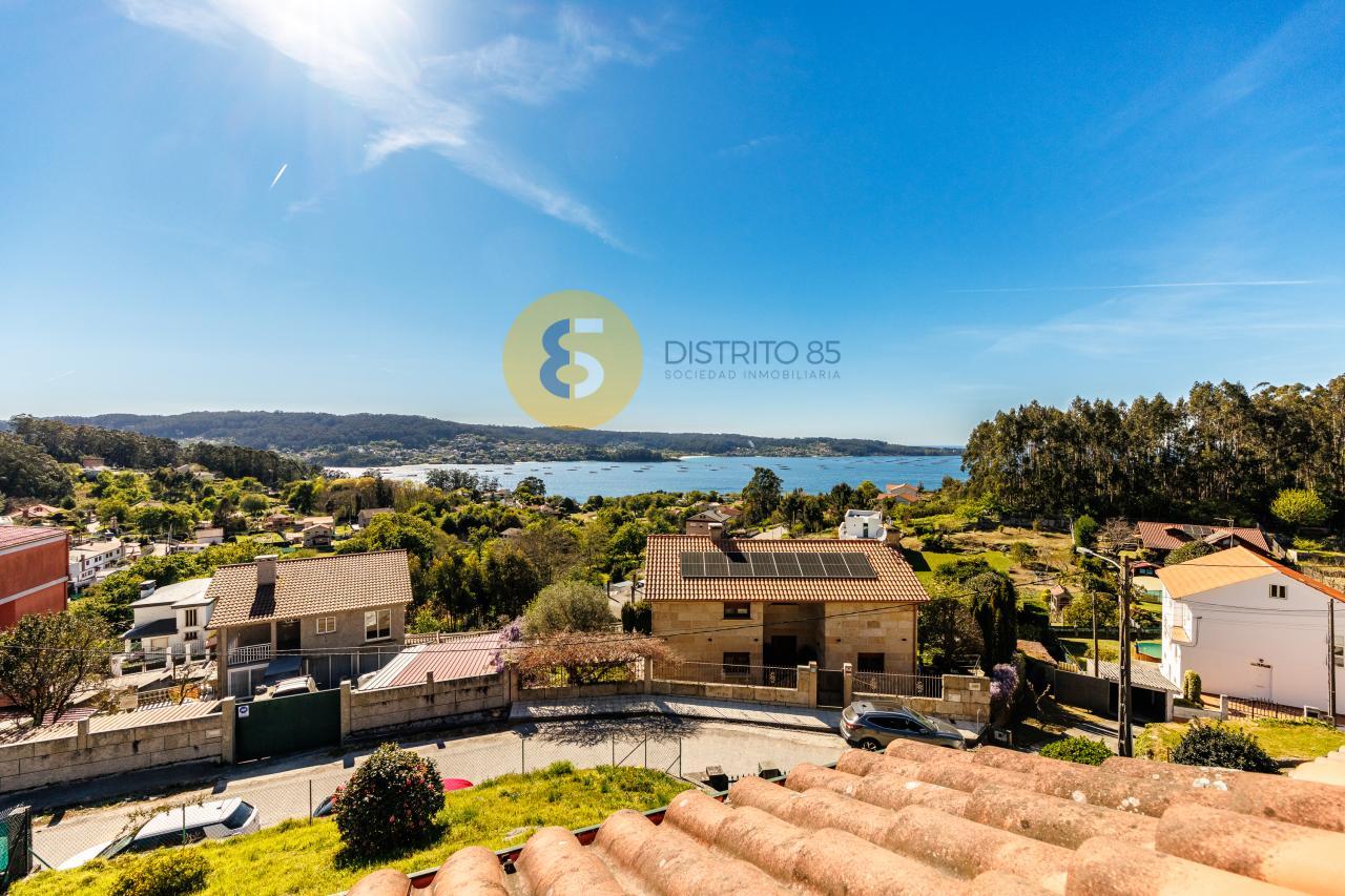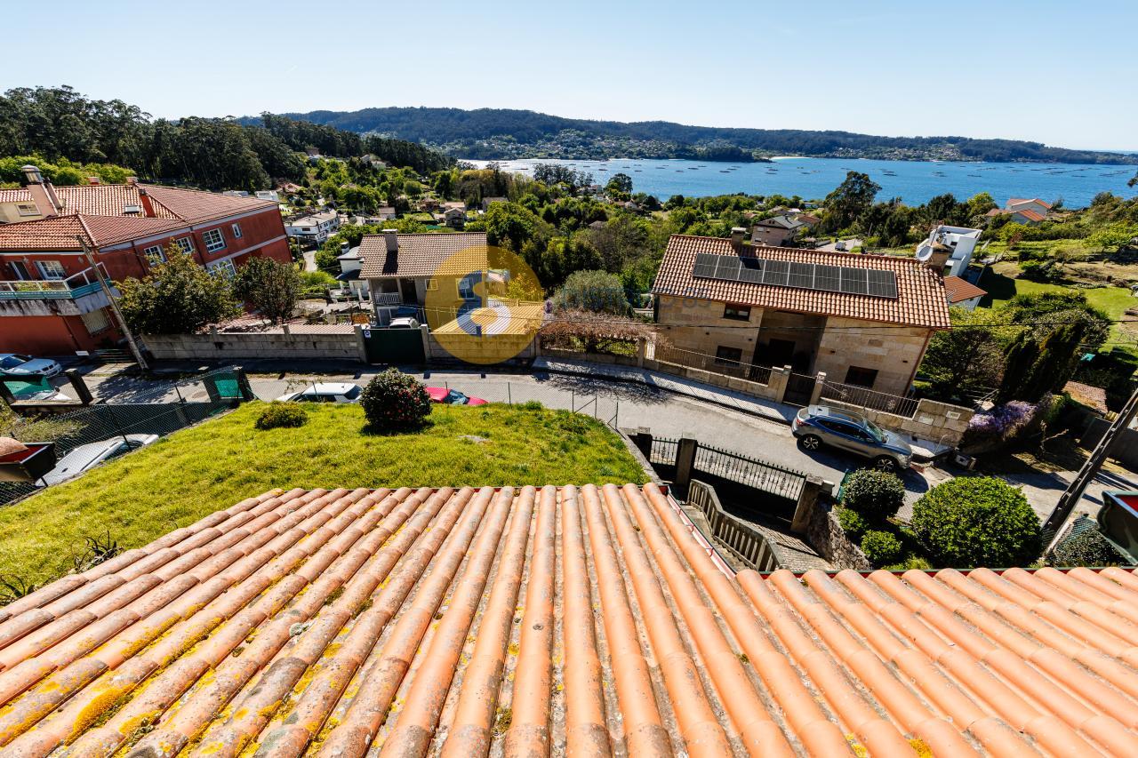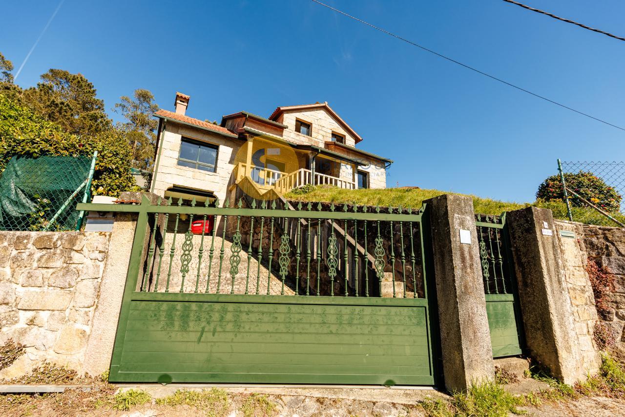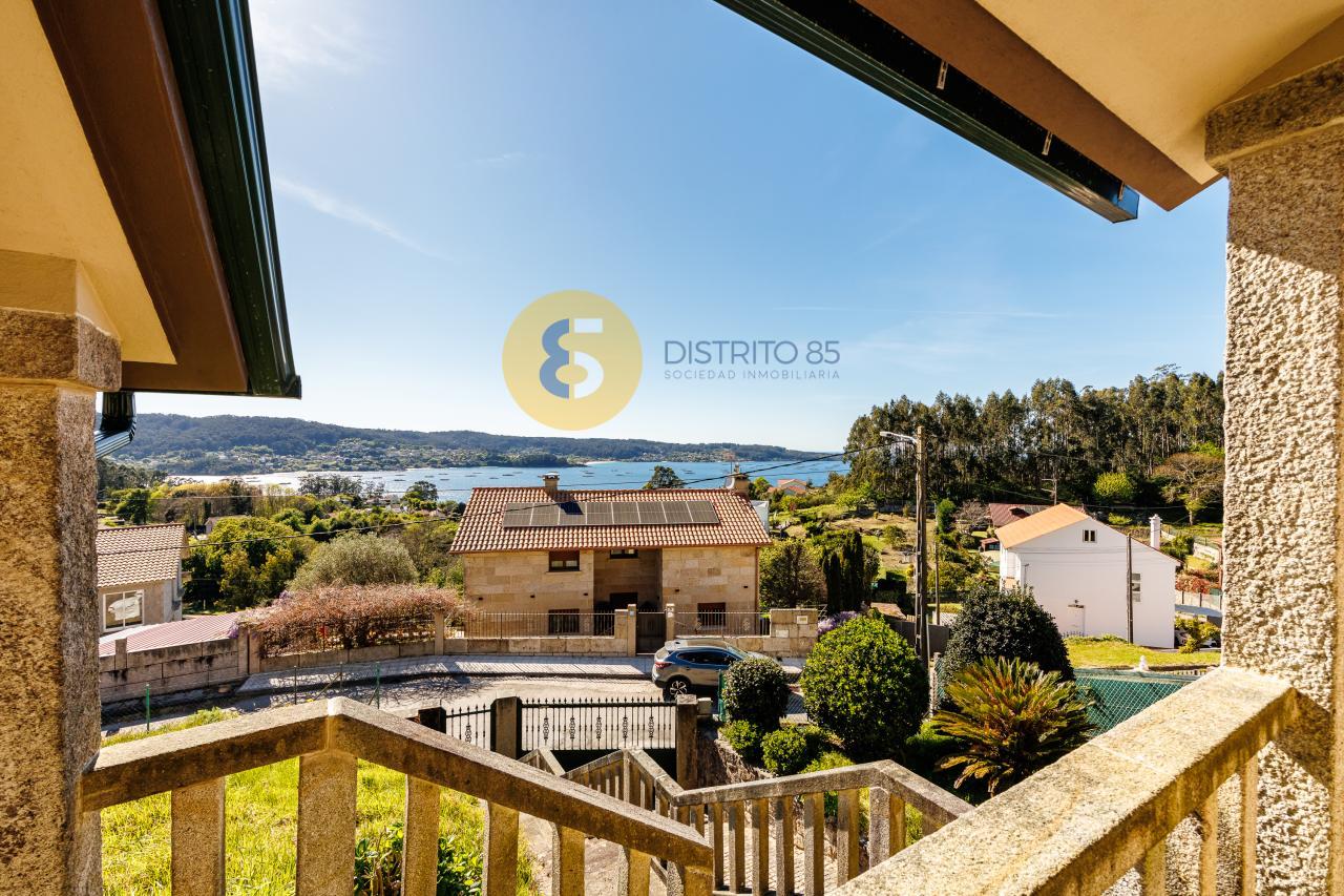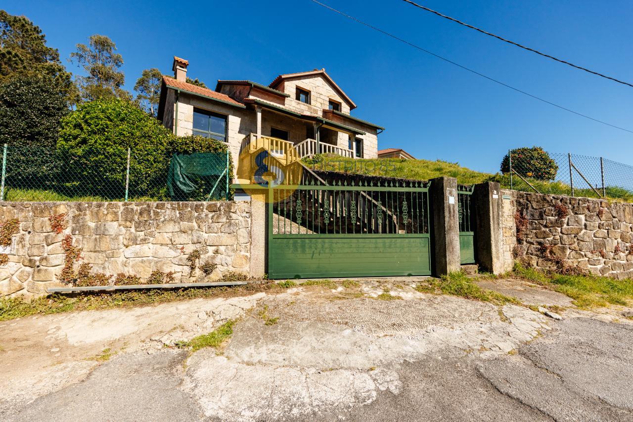 A la casa se accede desde unas escaleras privadas y el jardín tiene pendiente, dotando así de unas vistas privilegiadas a la ría y a las playas de la zona como Pinténs, Areabrava o Castiñeiras.
