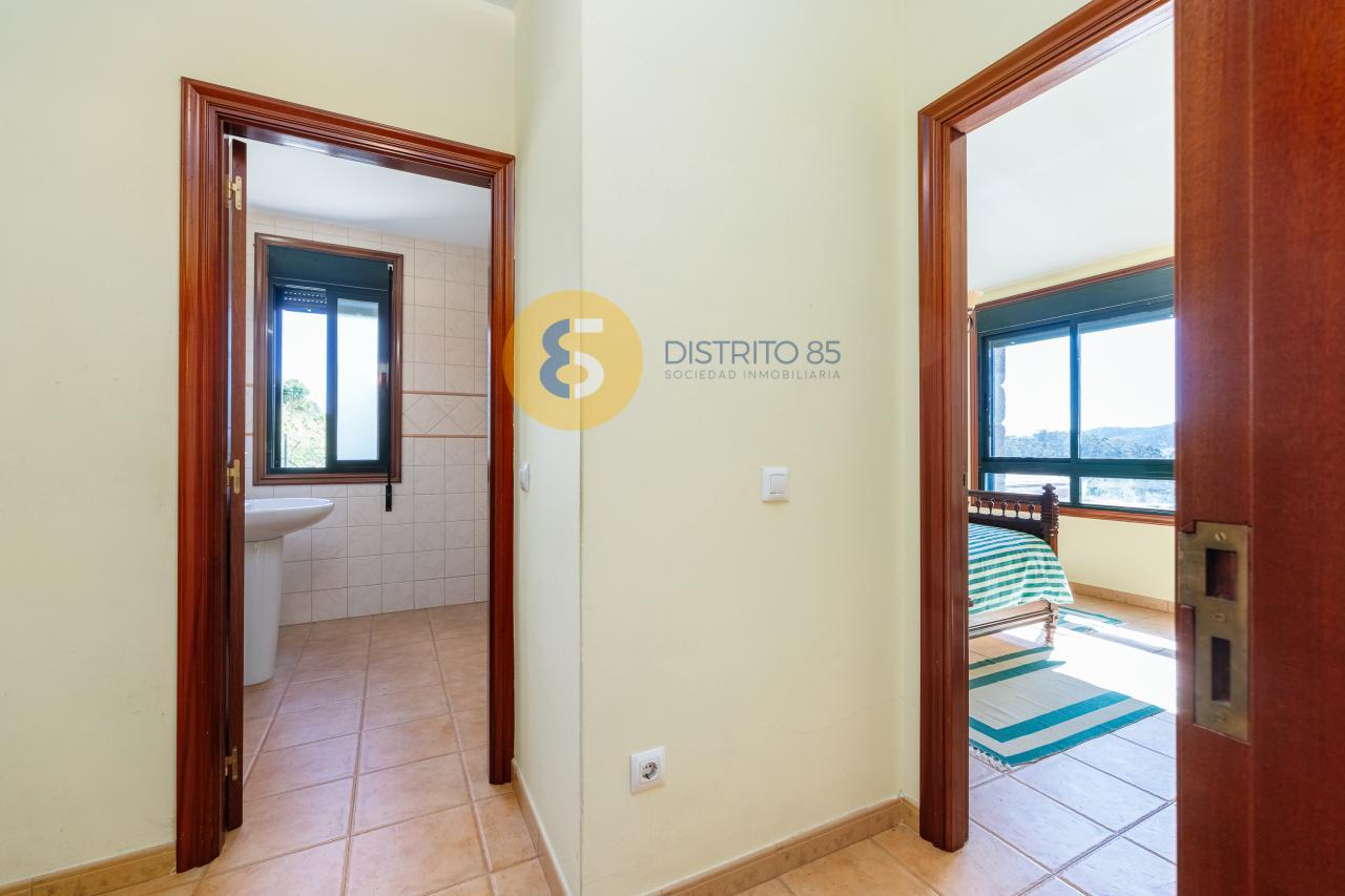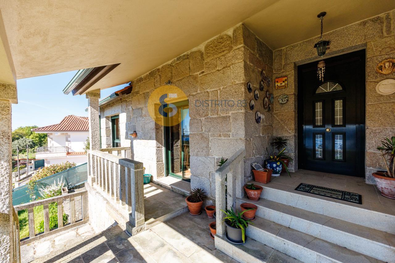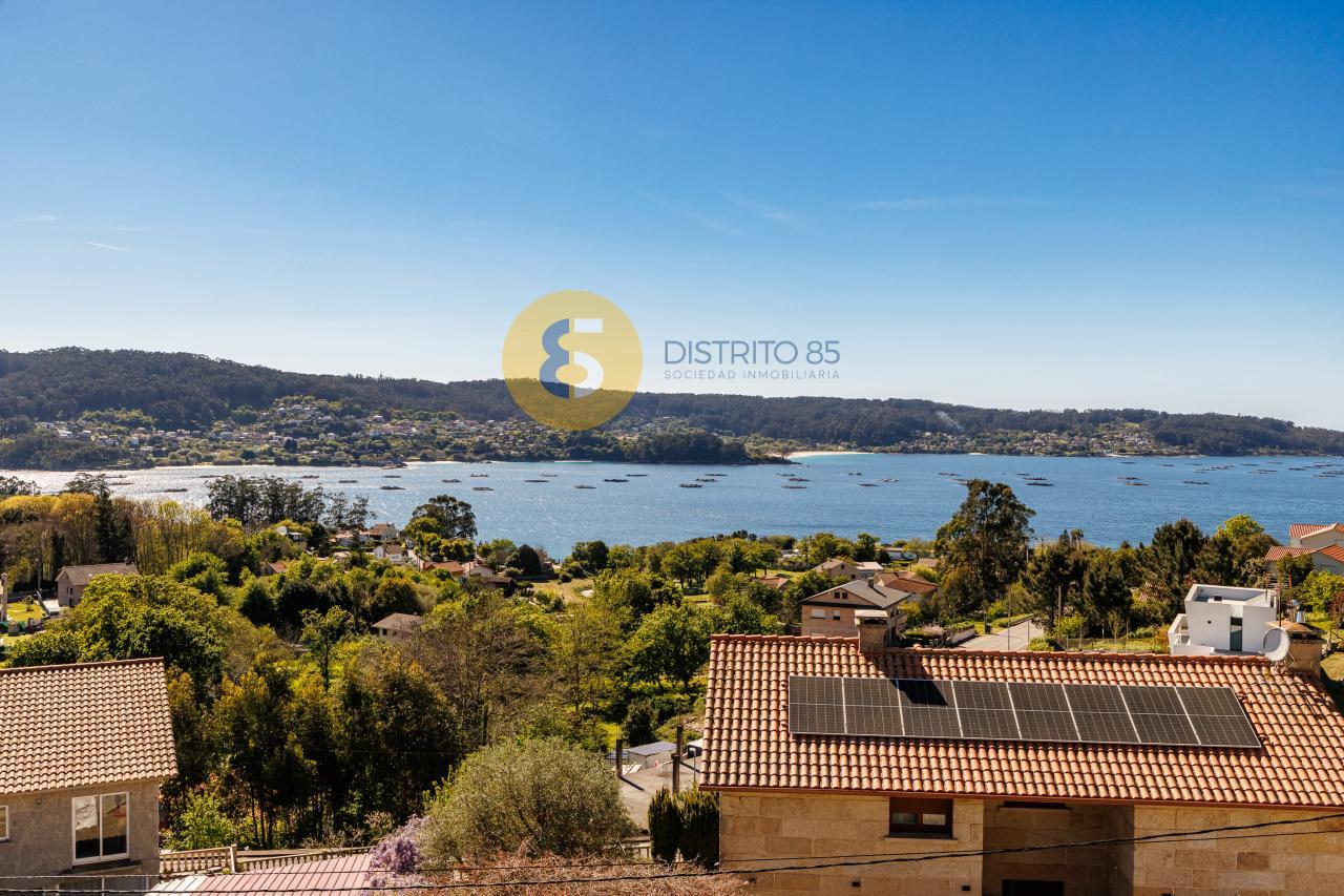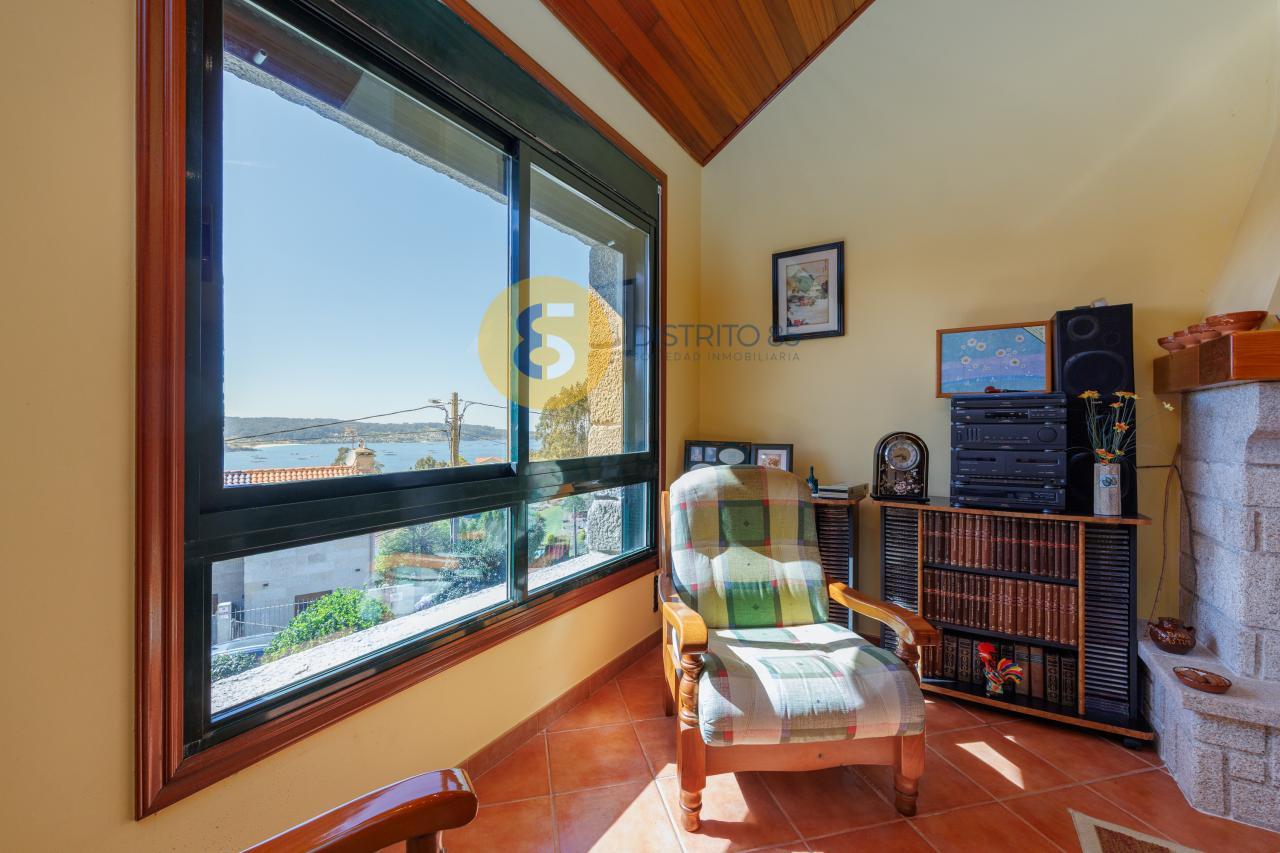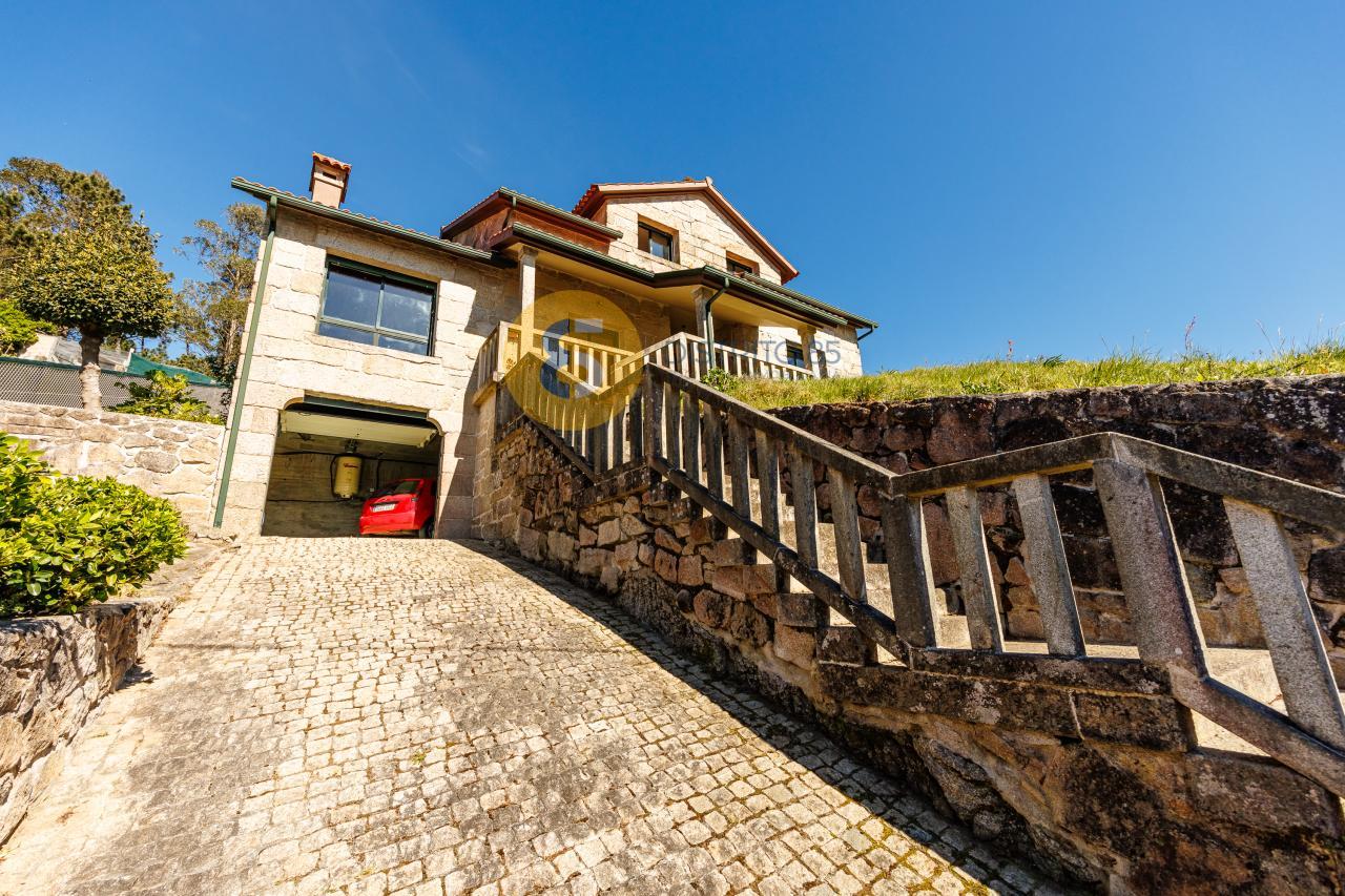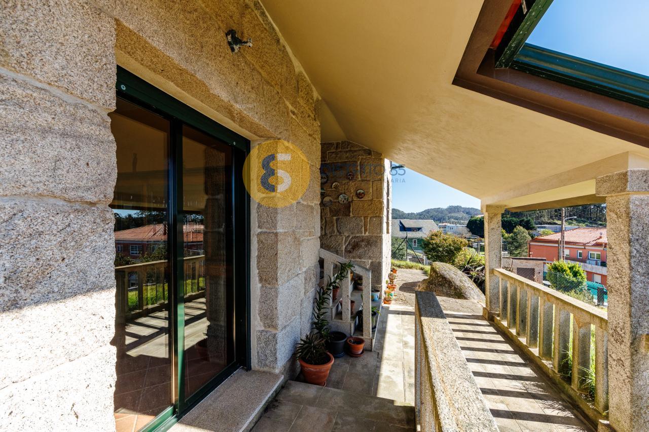 A la casa se accede desde unas escaleras privadas y el jardín tiene pendiente, dotando así de unas vistas privilegiadas a la ría y a las playas de la zona como Pinténs, Areabrava o Castiñeiras.