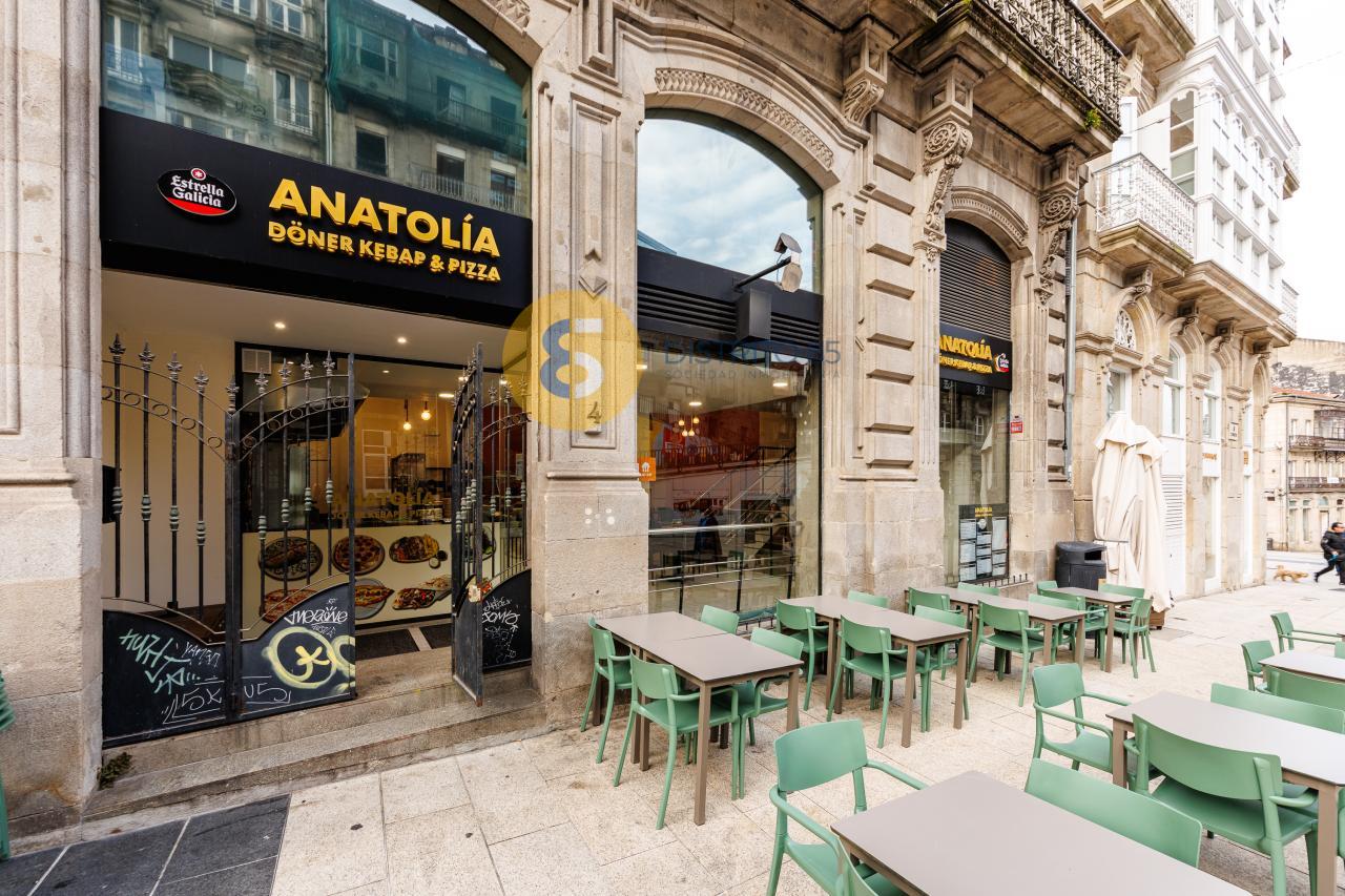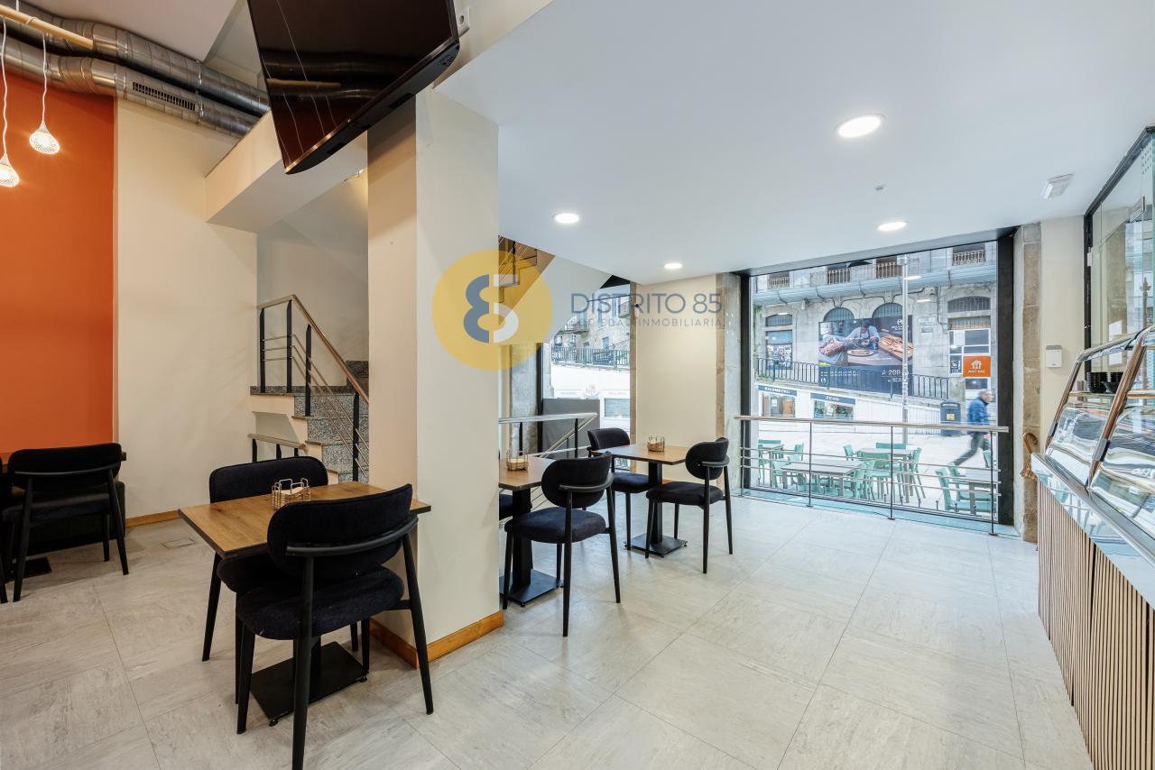 En la rúa Elduayen, ubicación privilegiada en el KM 0 de Vigo y en un edificio BIC del año 1900, disponemos este local comercial de 268 m2 totalmente acondicionado, con terraza para 10 mesas y actualmente alquilado.