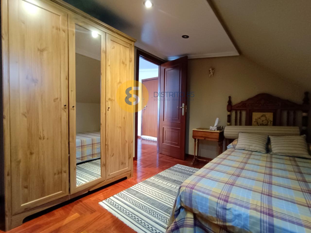 Unas escaleras en el hall nos lleva a la segunda planta con un amplio salón con una terraza con vistas a las Islas Cíes, dos dormitorios y un baño. Las habitaciones cuenta con grandes armarios, teniendo una de ella un pequeño trastero.