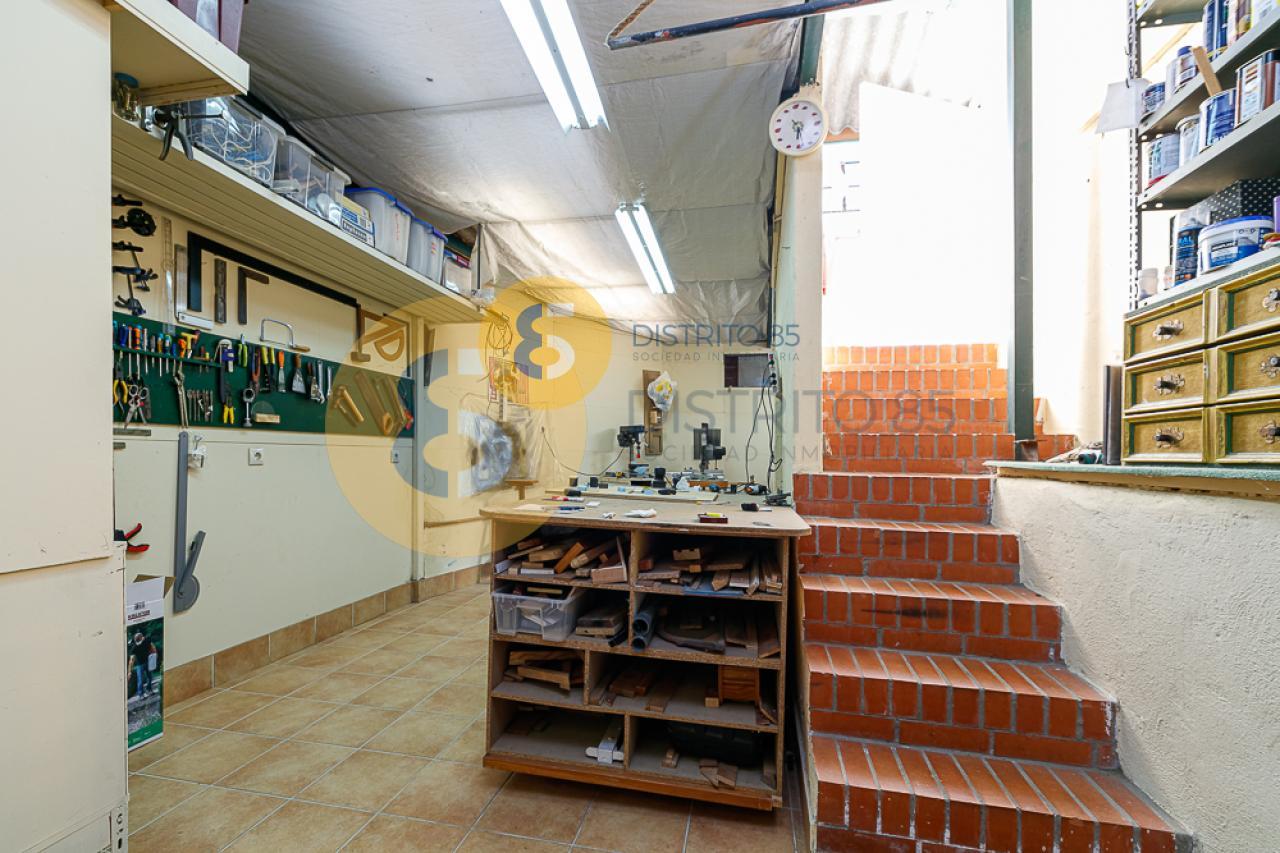 La planta sótano cuenta con un garaje para dos coches, bodega y trastero. También dispone de un baño en esta planta y una zona de recibidor con acceso hacia la vivienda mediante unas escaleras de caracol. En esta misma planta nos encontramos con un local comercial, que tiene también un acceso independiente desde la carretera. Está distribuido en una zona diáfana con uso actual de taller y otra de exposición. Tiene un aseo.