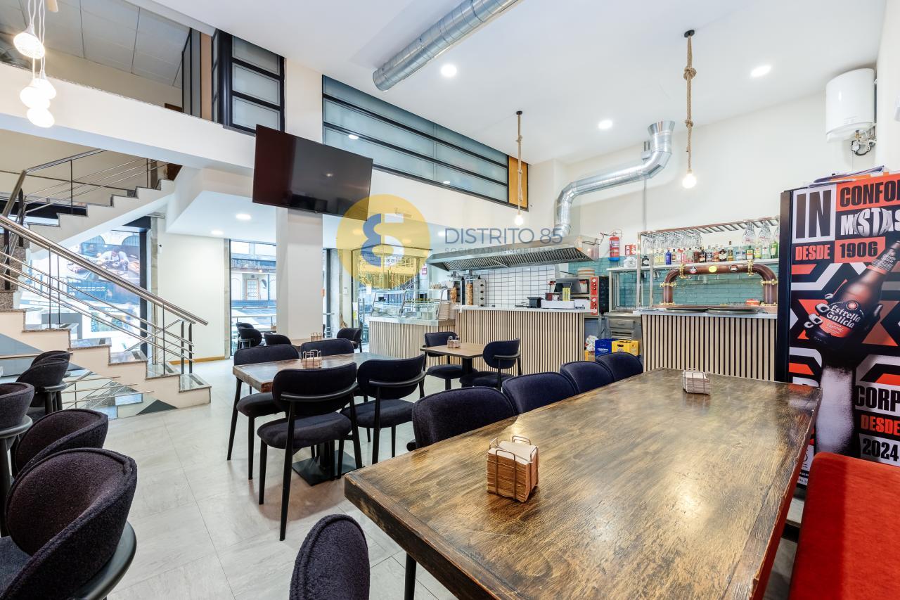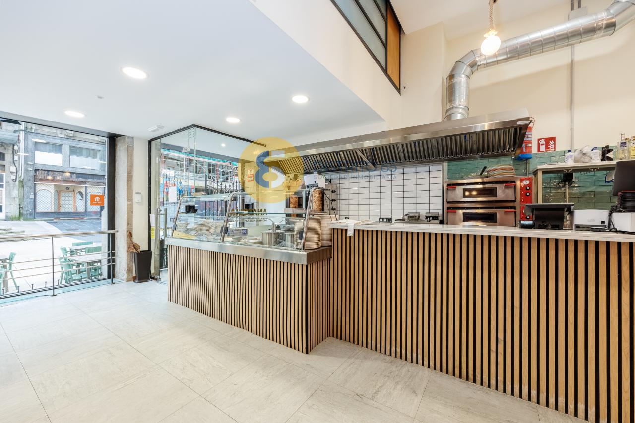 En la rúa Elduayen, ubicación privilegiada en el KM 0 de Vigo y en un edificio BIC del año 1900, disponemos este local comercial de 268 m2 totalmente acondicionado, con terraza para 10 mesas y actualmente alquilado.