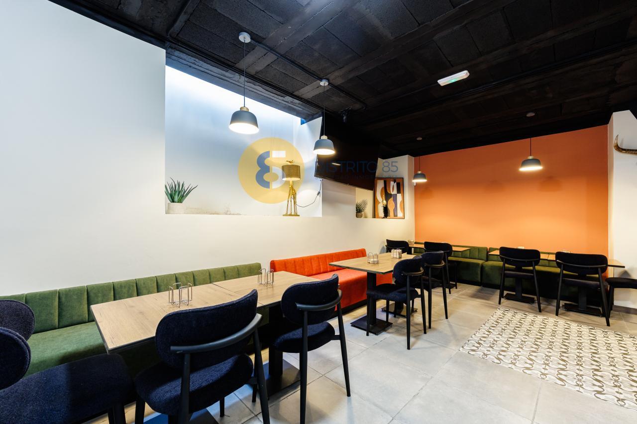 - Planta baja de 120 m2 con barra, mesas, cocina equipada y con salida de humos. Altura máxima de 4,25 metros y 2,54 en la entrada